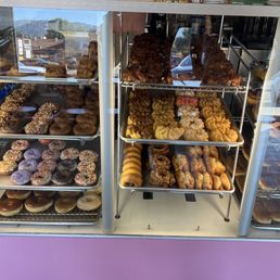 Stopped in to grab donuts on our last day in Oakhurst. Service was friendly and fast. We got two dozen donuts to go. They have a couple of tables inside but pretty small. The glazed donuts with any of the frostings and the French crullers were by far the best! They were both light and airy. Ended up eating more than I should have :-). We also got apple fritters, jelly donuts and cake donuts, they were good but will say the glazed and crullers were superior. The donuts were very fresh, so much so that we wrapped up our leftovers and ate over the next few days and they were still pretty good on day three. Only negative, $50 for two dozen but I guess you are in a small remote town in California.